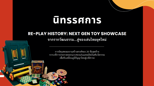 ขอเชิญร่วมชมนิทรรศการ และร่วมกิจกรรมจับคู่ธุรกิจจาก 20 ผลงาน ที่ได้ผลิต Prototype ไว้แล้ว ในงาน ”Replay History เรื่องไม่เล่น ของเล่นวิถีไทย“ ในวันพุธที่ 11 มิถุนายน 2568 ณ ICS Lifestyle Complex ชั้น M ตรงข้ามกับ ICON Siam