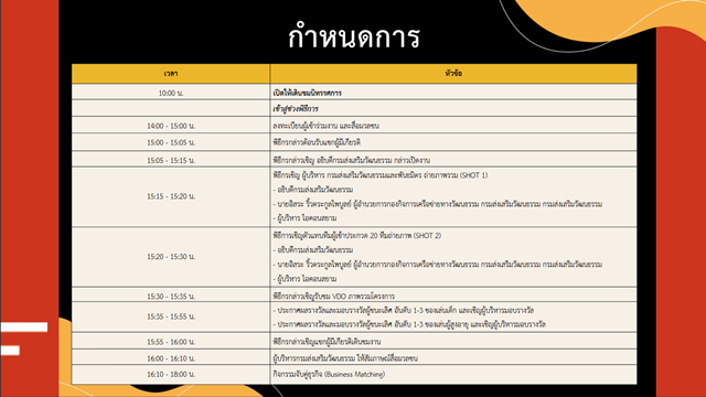 กิจกรรมจับคู่ทางธุรกิจ จะเริ่มในเวลา 16:00 น.